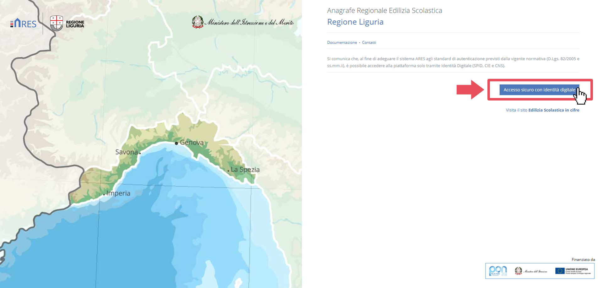 Nella pagina di login al sistema ARES si trova il pulsante per accedere all’applicativo tramite identità digitale.